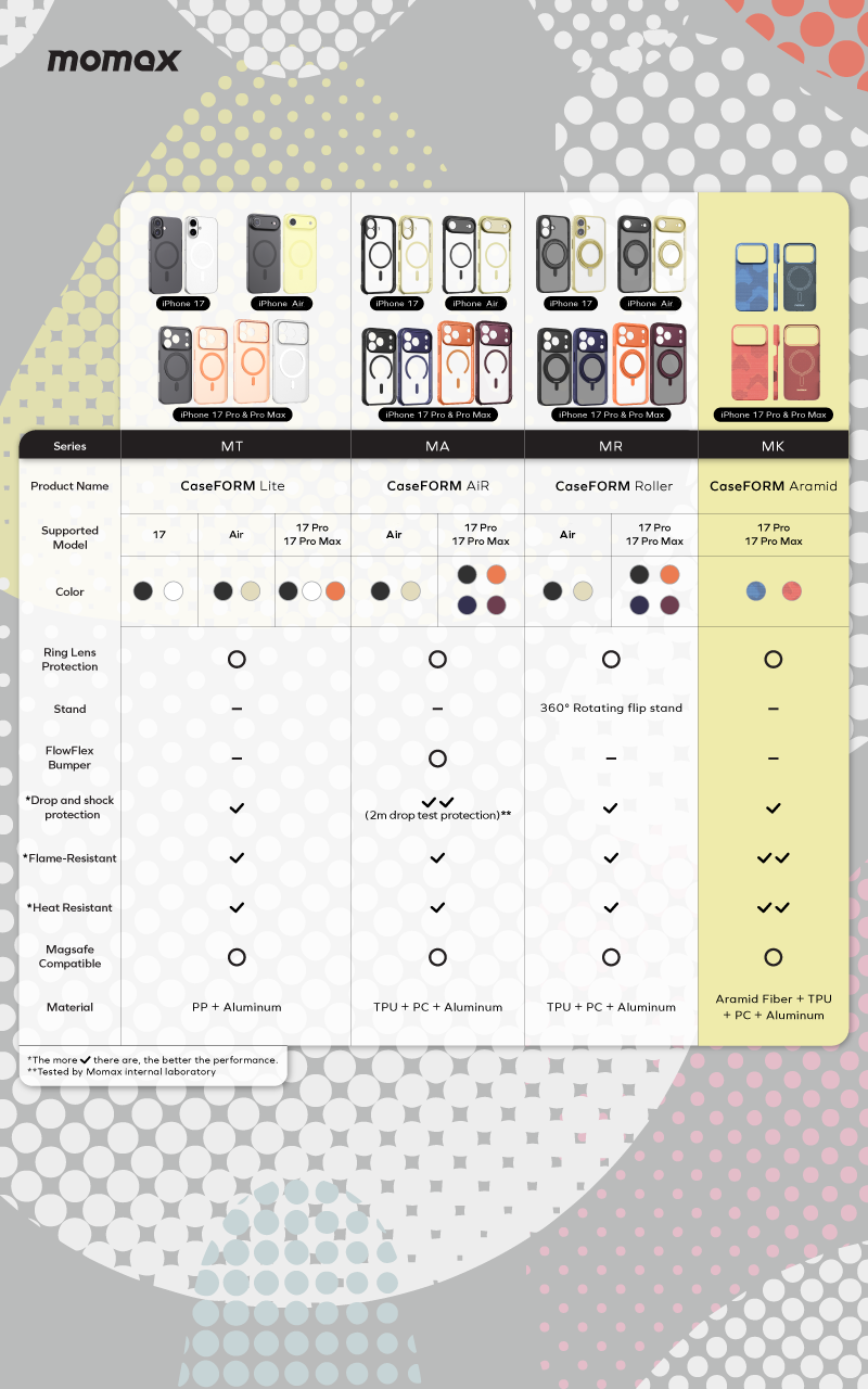 Introducing the Momax CaseFORM Aramid for iPhone 17 series – where cutting-edge aerospace technology meets uncompromising elegance.