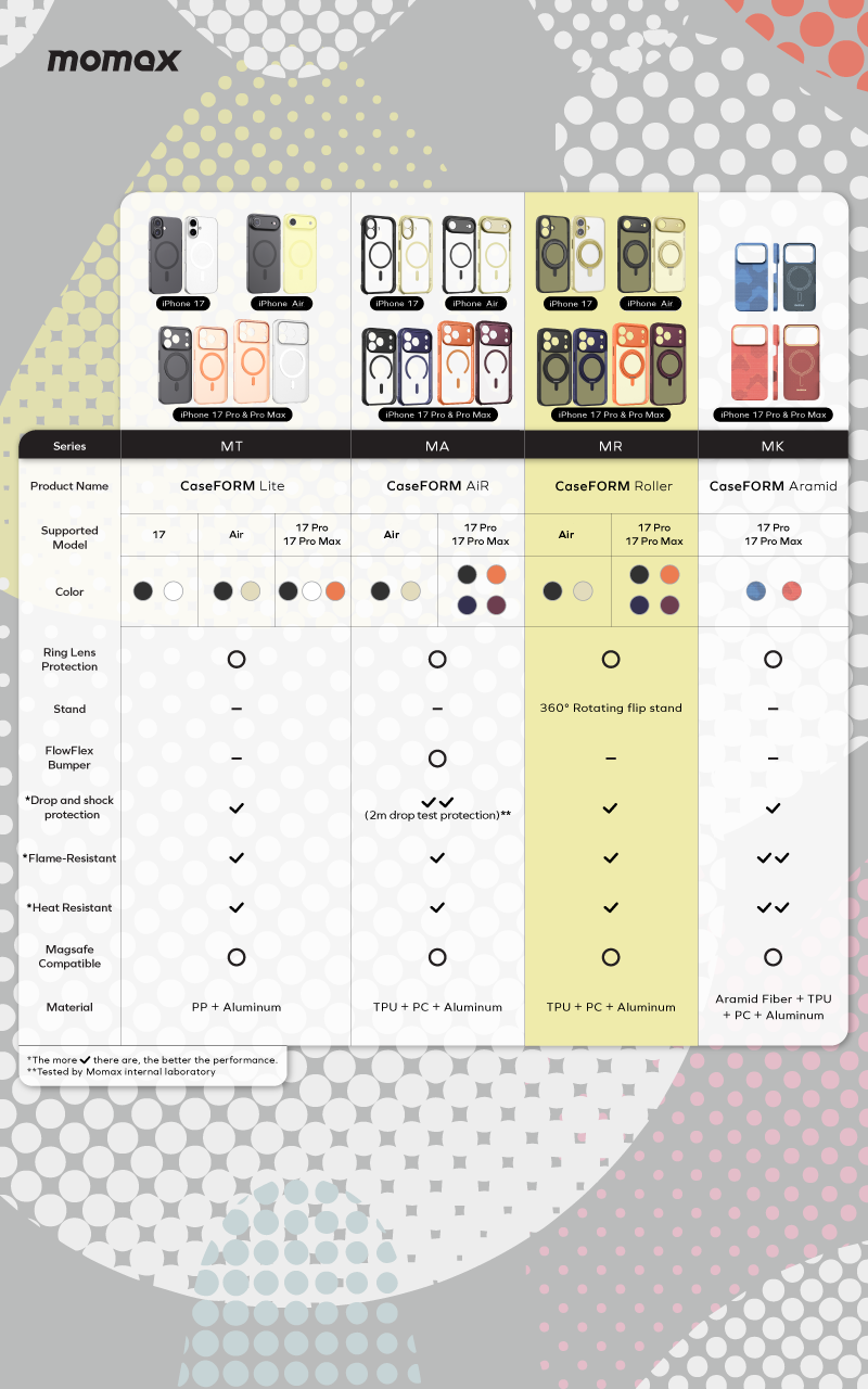 Introducing the Momax CaseFORM Roller for iPhone 17 series – where revolutionary engineering meets uncompromising protection.