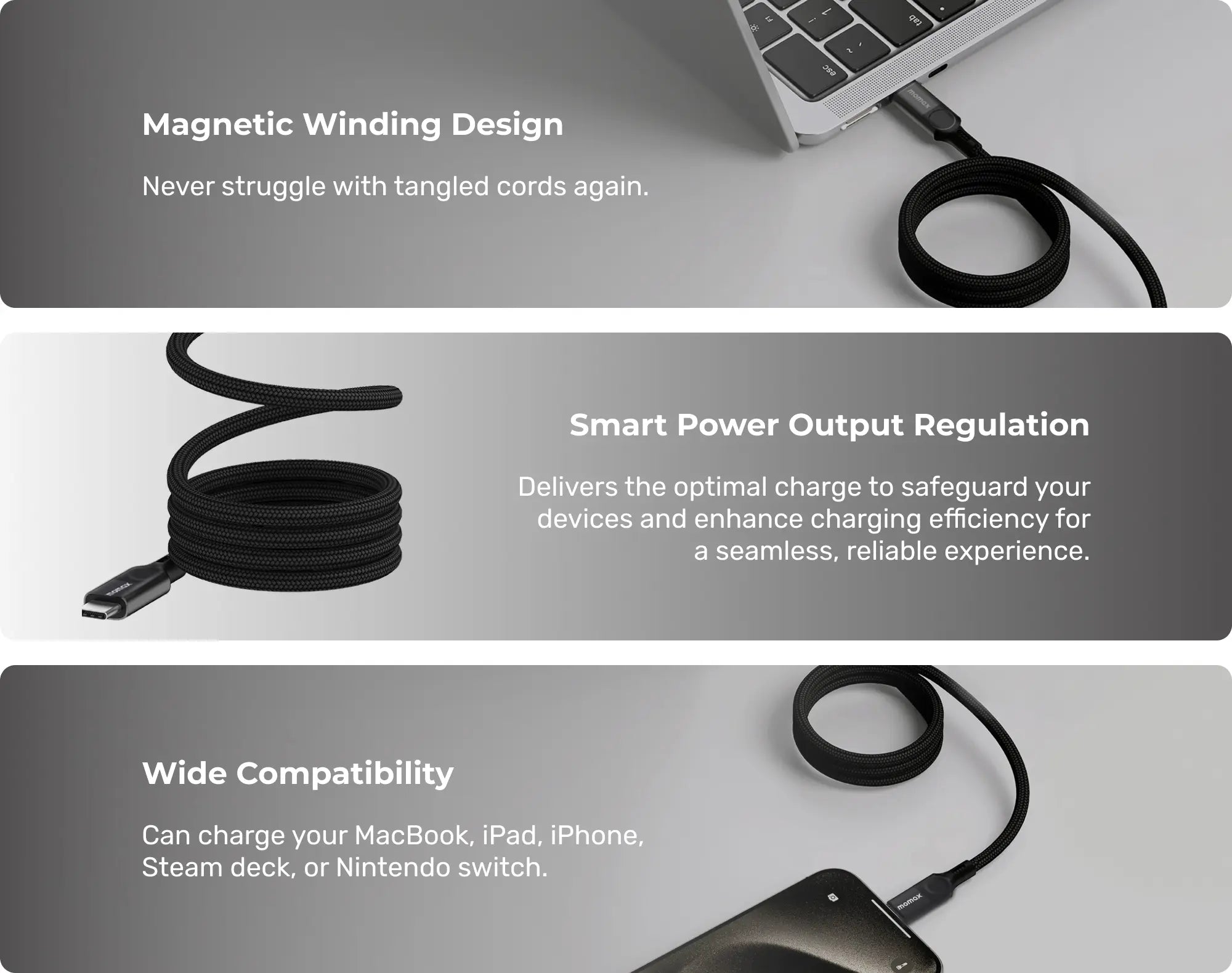 Say goodbye to frustrating tangles and knots - the innovative magnetic design keeps your cable organized and ready to use at all times.