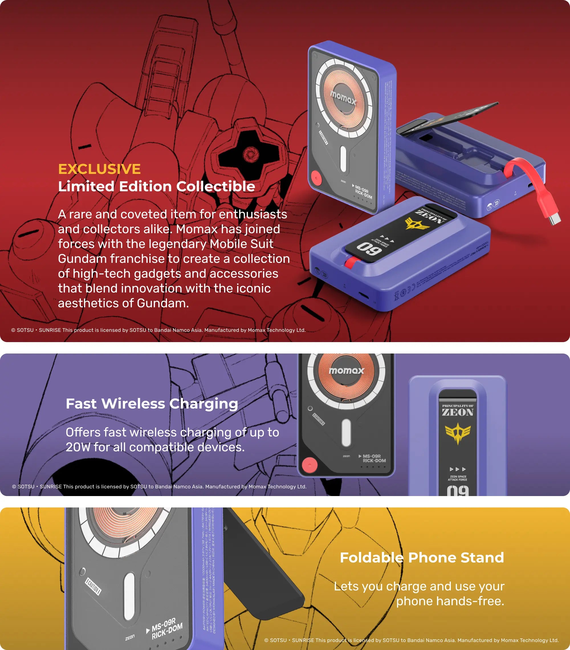 Get your hands on a versatile power bank inspired by Mobile Suit Gundam that combines wireless, fast, and multi-device charging in one convenient package.
