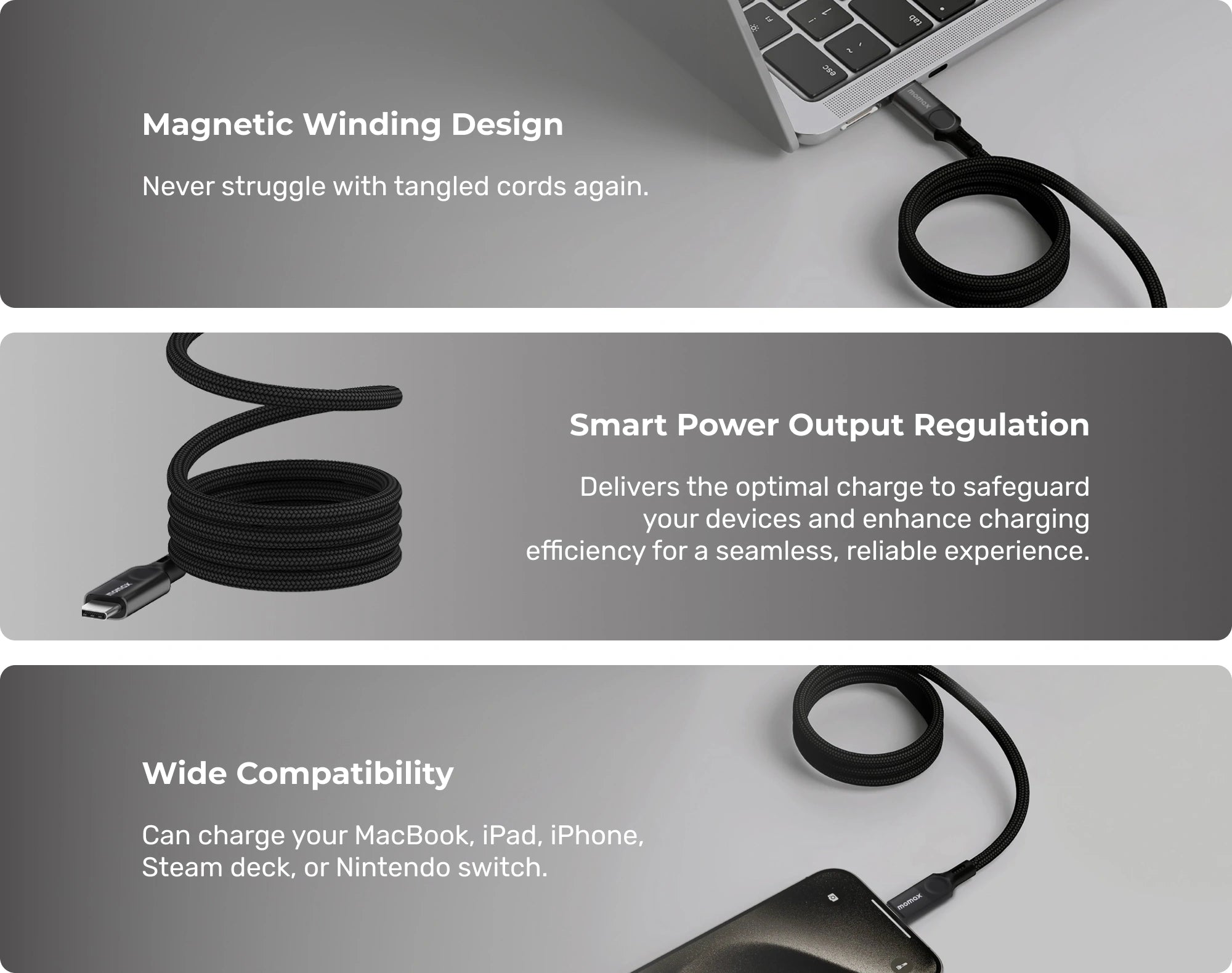 Say goodbye to frustrating tangles and knots - the innovative magnetic design keeps your cable organized and ready to use at all times.