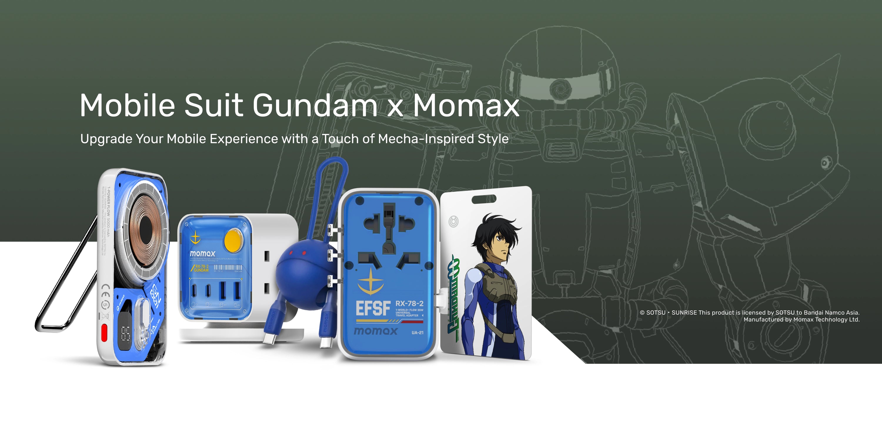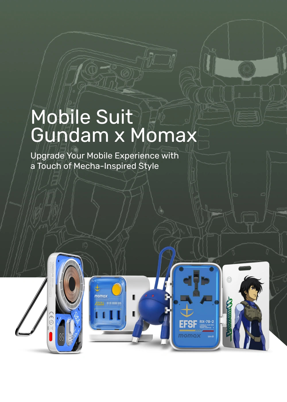 Since 2003, Momax has been leading the way in the realm of mobile accessories, constantly pushing boundaries and setting new standards for tech enthusiasts worldwide. Now, in an unprecedented collaboration with the renowned Mobile Suit Gundam series, Momax brings you a limited edition collection that is set to revolutionize the way you experience both technology and fandom.