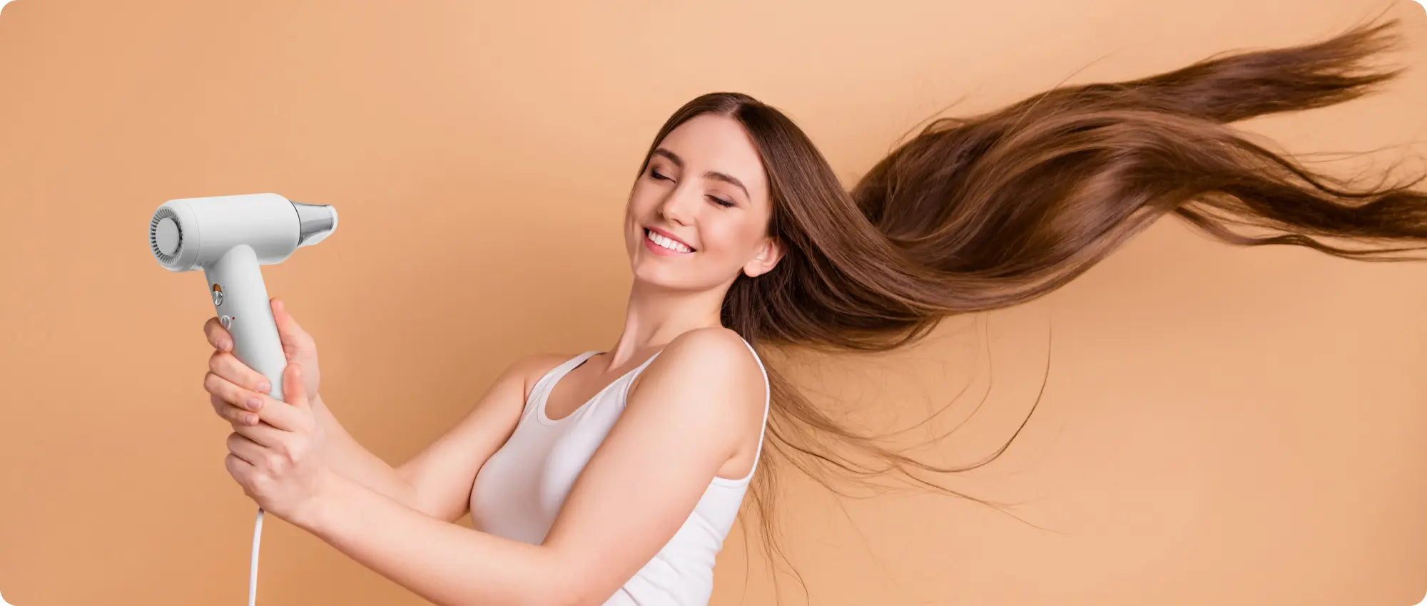 The 1-Care Hair Dryer's high-speed motor reaching up to 110,000 RPM cuts drying time significantly, while its built-in ion generator releases up to 2 billion negative ions to instantly smooth frizz and static for sleek, shiny hair.