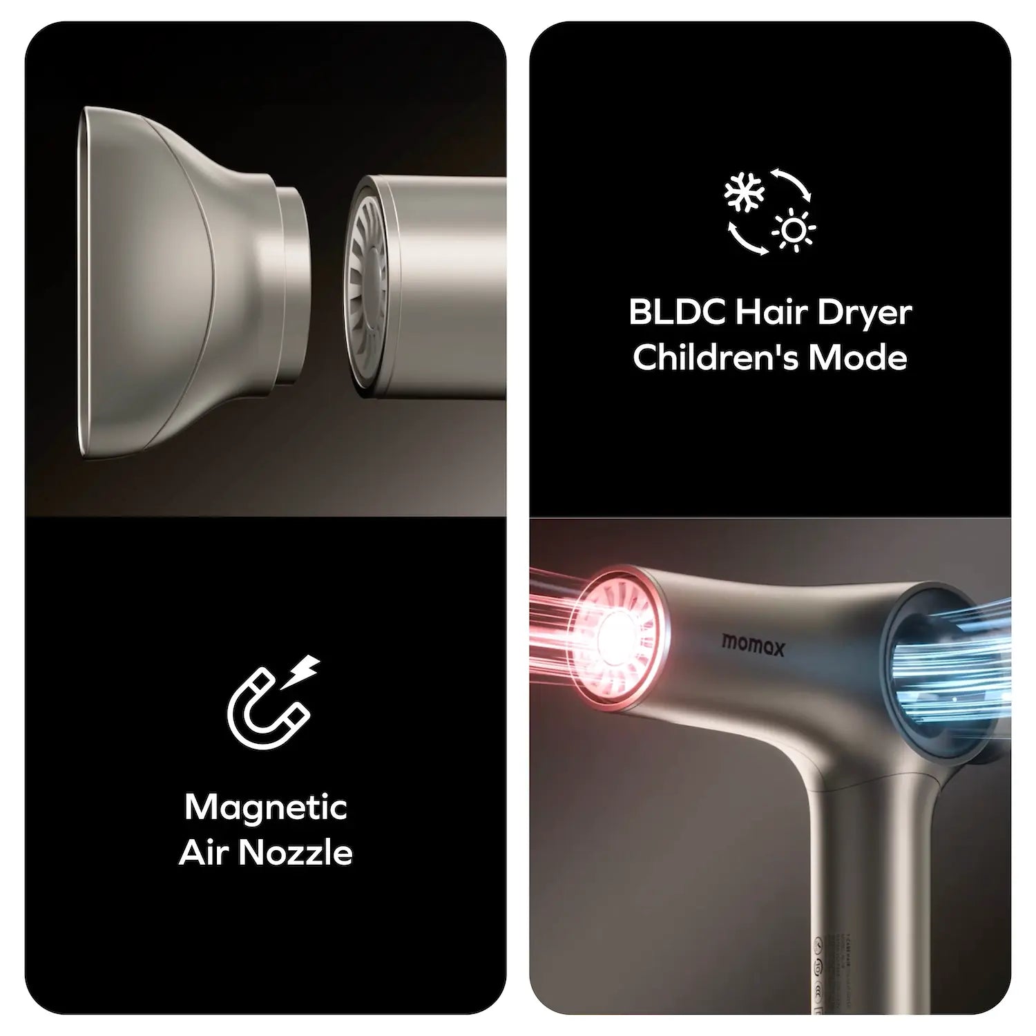 - Magnetic air nozzle design with children's safety mode ensures effortless, secure attachment