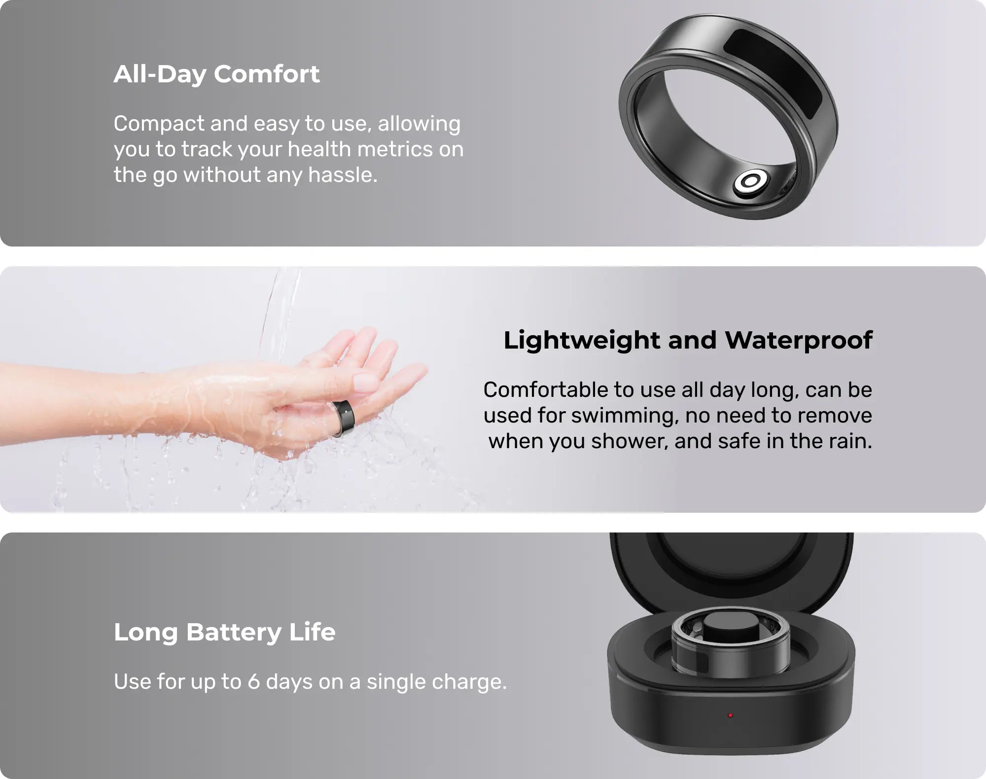 Fully enclosed design and cutting-edge IP68 waterproof technology, this smart ring excels in handling everyday waterproofing tasks. Whether you're washing your hands, taking a bath, or showering, this ring effortlessly meets all your waterproof needs.