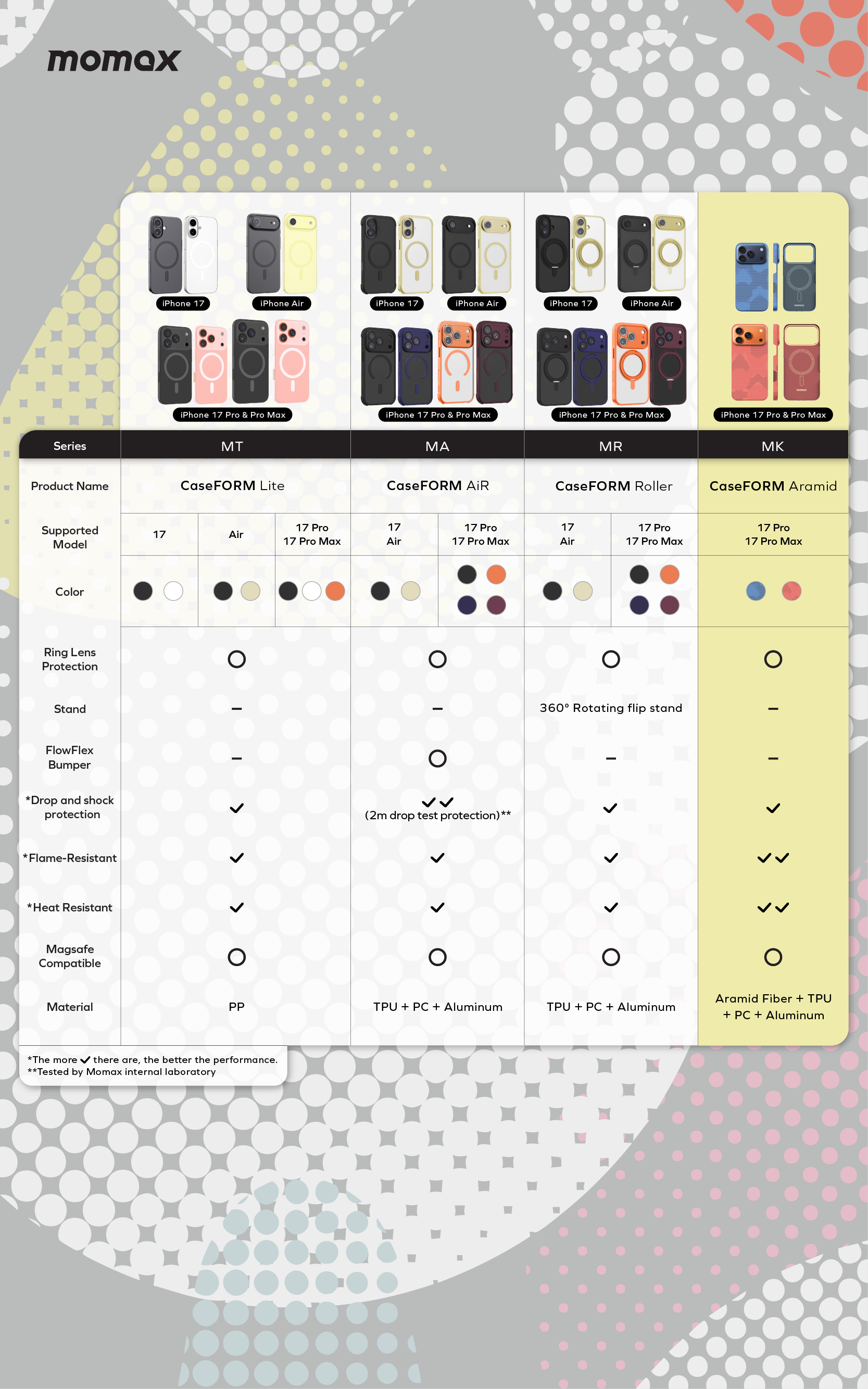 Introducing the Momax CaseFORM Aramid for iPhone 17 series – where cutting-edge aerospace technology meets uncompromising elegance.