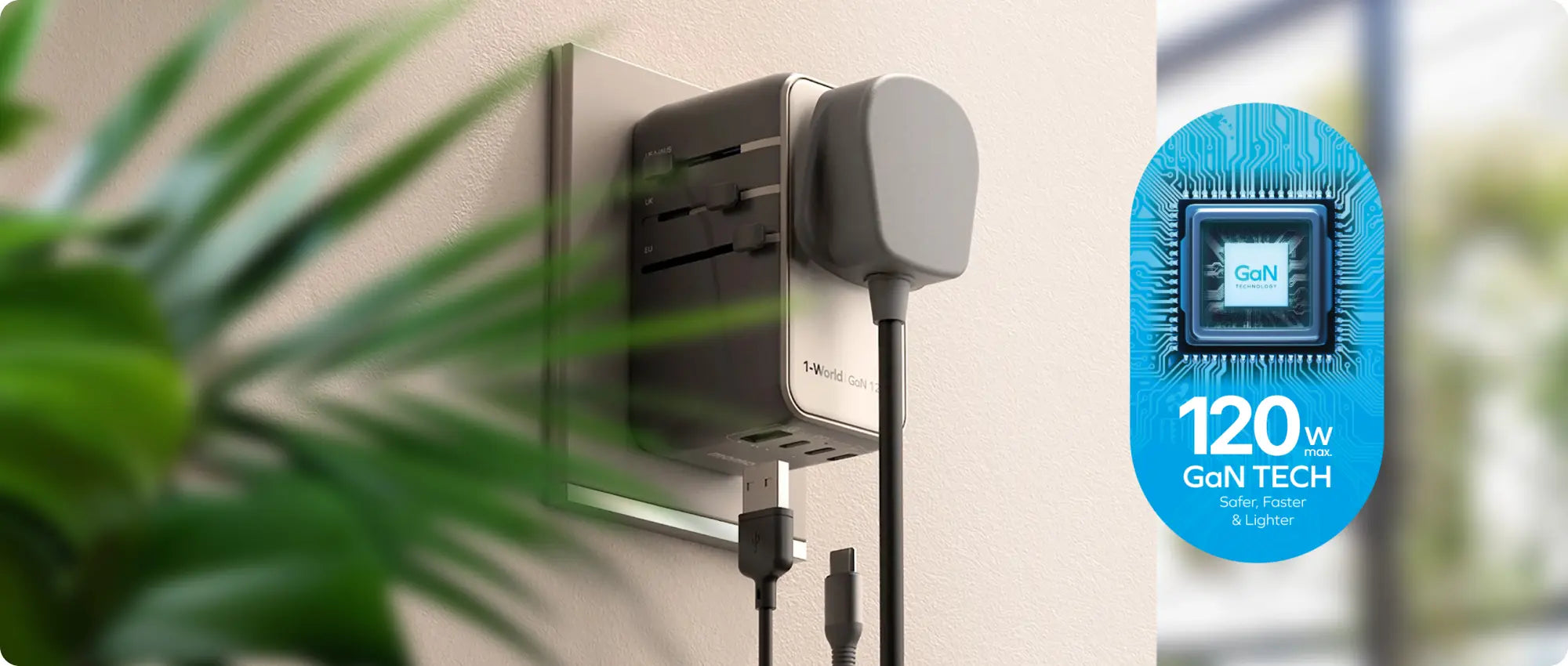 1-World Universal 4-Port Travel GaN Charger 120W + USB-C Cable